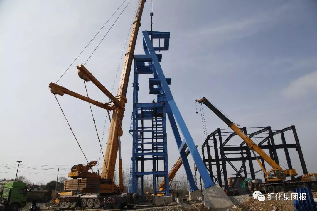 317下午,新桥矿业公司露天转地下项目现场,在3台巨型吊车的吊装牵引下,70多吨重的副井斜架与38高的立架顺利连接,新的副井井架巍然屹立于新桥圣冲河畔,标志着该公司重点矿建工程之一的露天转地下项目地表矿建工程基本完工,经过一段时间设备安装和调试后便可投入生产。