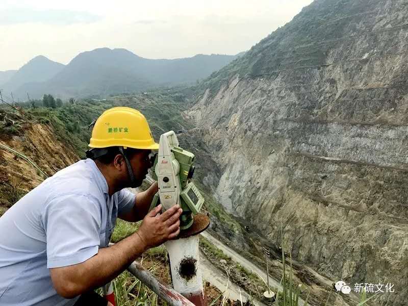 6月11日,矿业公司露天采场,测量技术人员韩长伟正在边坡监测数据。